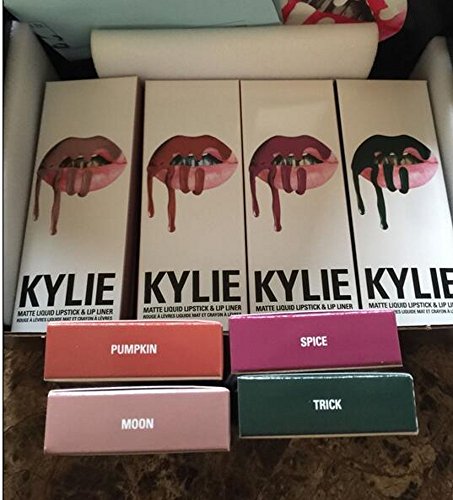 -. Binding : Toy -. Brand : Kylie Cosmetics -. EAN : 8476336168332 -. Feature : Lip kit Bundle -. IsAdultProduct : 0 -. Label : Kylie Cosmetics -. LegalDisclaimer : Brand New In Box....All Kylies are Authentic or Genuine: Gold Hologram of teeth on the box and Lip Pencil has Serial Number engraved on the Lip Pencil. -. Manufacturer : Kylie Cosmetics -. ProductGroup : Toy -. ProductTypeName : TOYS_AND_GAMES -. Publisher : Kylie Cosmetics -. Studio : Kylie Cosmetics -. Title : Trick, Moon, Pumpkin and Spice | Kylie Lipstick Set