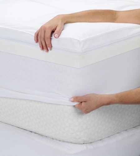 - Feature : Luxurious 4-inch dual-layer topper forms to body curves for pressure point relief and improved circulation / Exclusive 2-layer design features a plush 2-inch down alternative comfort layer and a 2-inch bottom layer of SureTemp Memory Foam / Removable, machine-washable 300-thread count 100-percent cotton fitted cover holds topper securely in place on mattress / After unpacking, allow up to 72 hours for topper to fully expand / Includes 10-year limited manufactures warranty