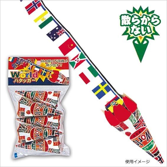 38カ国の万国旗が飛び出すクラッカー!!万国旗の帯はクラッカー本体にくっついているので散らかりません。