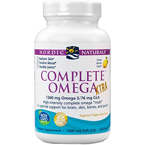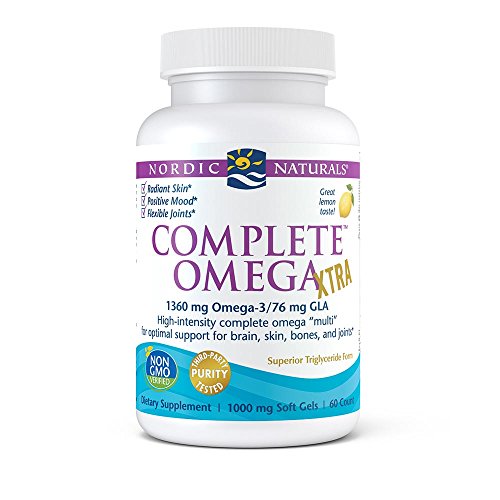 With more than twice the omega-3 as Complete Omega, Complete Omega Xtra is a high-intensity blend of concentrated omega-3 from fish oil, GLA from borage oil, and omega-9 oleic acid. This enhanced formulation offers intensive support for optimal heart and brain health, positive mood, healthy joints, and radiant skin. Wild caught. Pure. No fishy aftertaste. Friend of the Sea certified. Every batch of Nordic Naturals fish oils is tested by a third-party certified lab for environmental toxins, including heavy metals. All fish oils are in the triglyceride form and surpass the strictest international standards for purity and freshness. Certificates of Analysis available upon request.