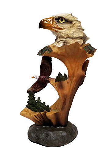 - Bald eagle bust and flying eagle figurine with the look of being hand carved from a log