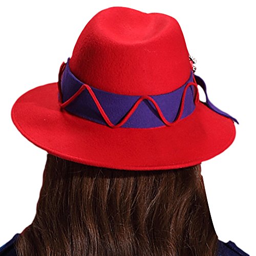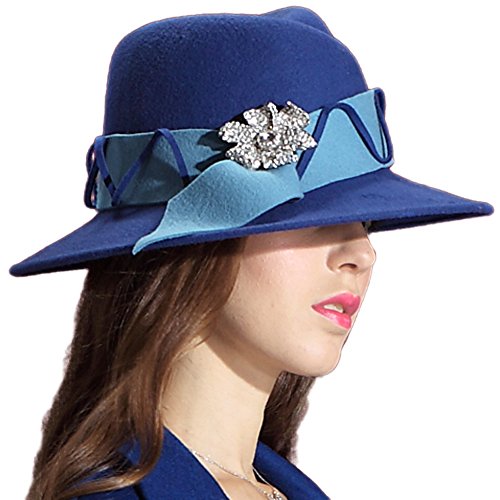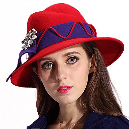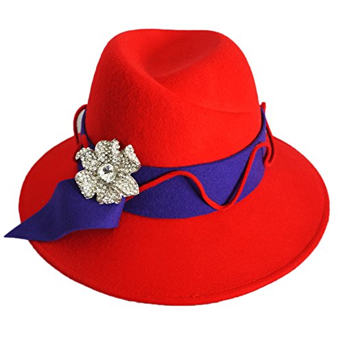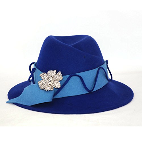 -. Feature : women winter fedora wide brim stones 100% wool / Hat size : Hat diamter:13.4 inches .Height:5.1 inches .Hat brim:3.1 inches / Hat circumference:22.64inches (drawstring adjuster inside) / Colour :red/blue . blue / Hat care: dry clean only