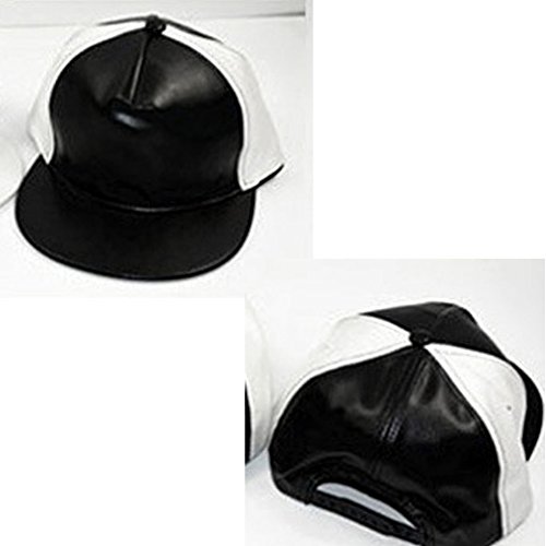 -. Title : LOCOMO Black White PU Leather Color Mix Snapback Baseball Brim Cap FFH201BLK