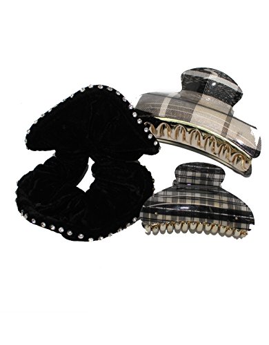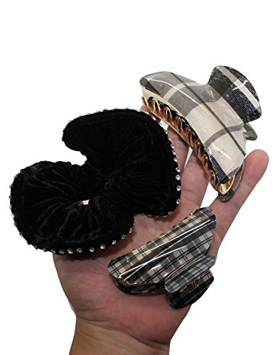 3 PIECE SET: Glittering Rhinestones Hair Scrunchie & Resin Claw Clips / Hair Accessories - Multicolor