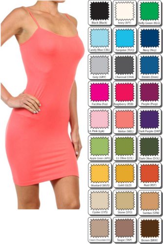 The Lola is your seamless solid color casual go-to comfortable dress with Spaghetti straps. The Lola is super soft, stretchy, and has memory fibers that hugs those curves like an hour glass. This is a great dress for layering or simply just worn plain with accessories.Feature