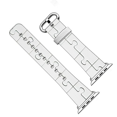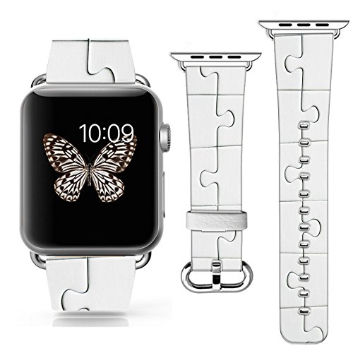 -. Title : Iwatch Band Leather 42Mm,Apple Watch Strap Genuine Leather Replacement 42Mm White Creative Fun Personalized Unique Unusual Special Puzzles Patterns (with metal clasp together)