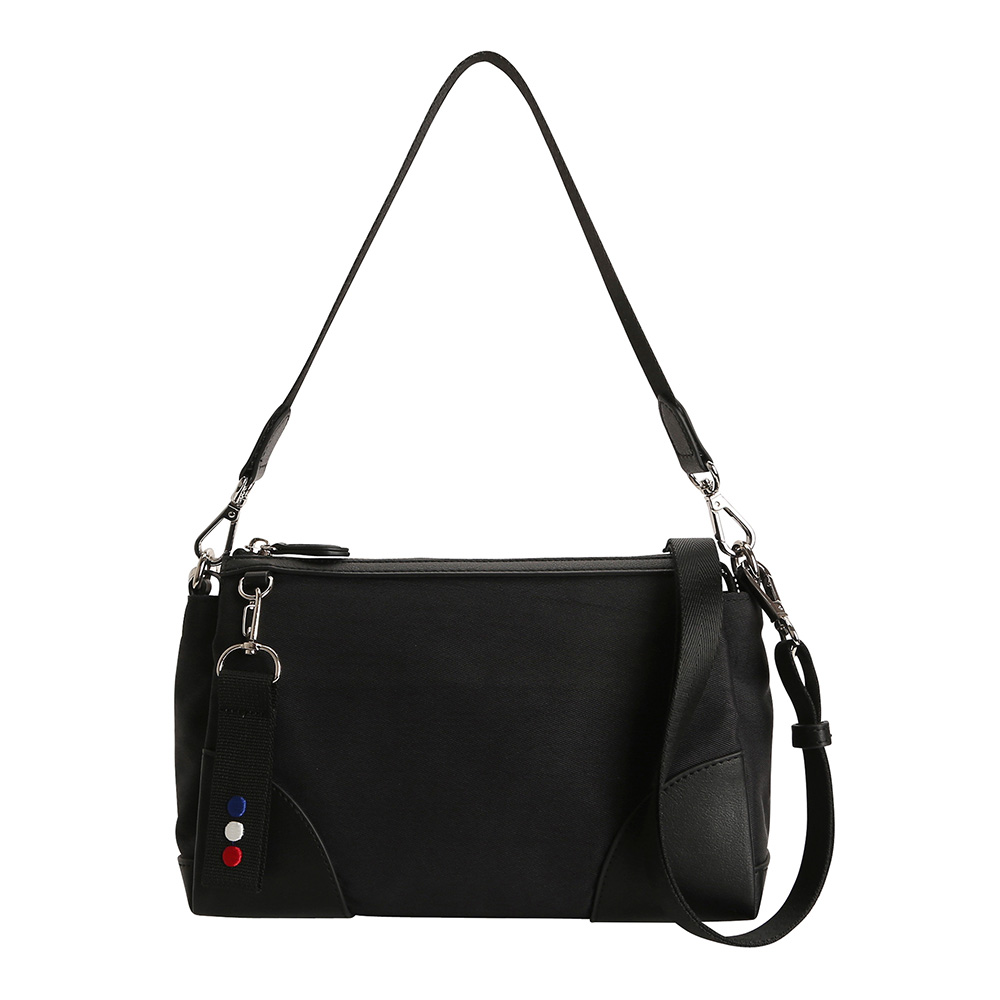 블랙 컬러에 소가죽 패치장식으로 포인트를 준 크로스백 입니다. 트랜디한 심플함이 매력적인 아이템 입니다.