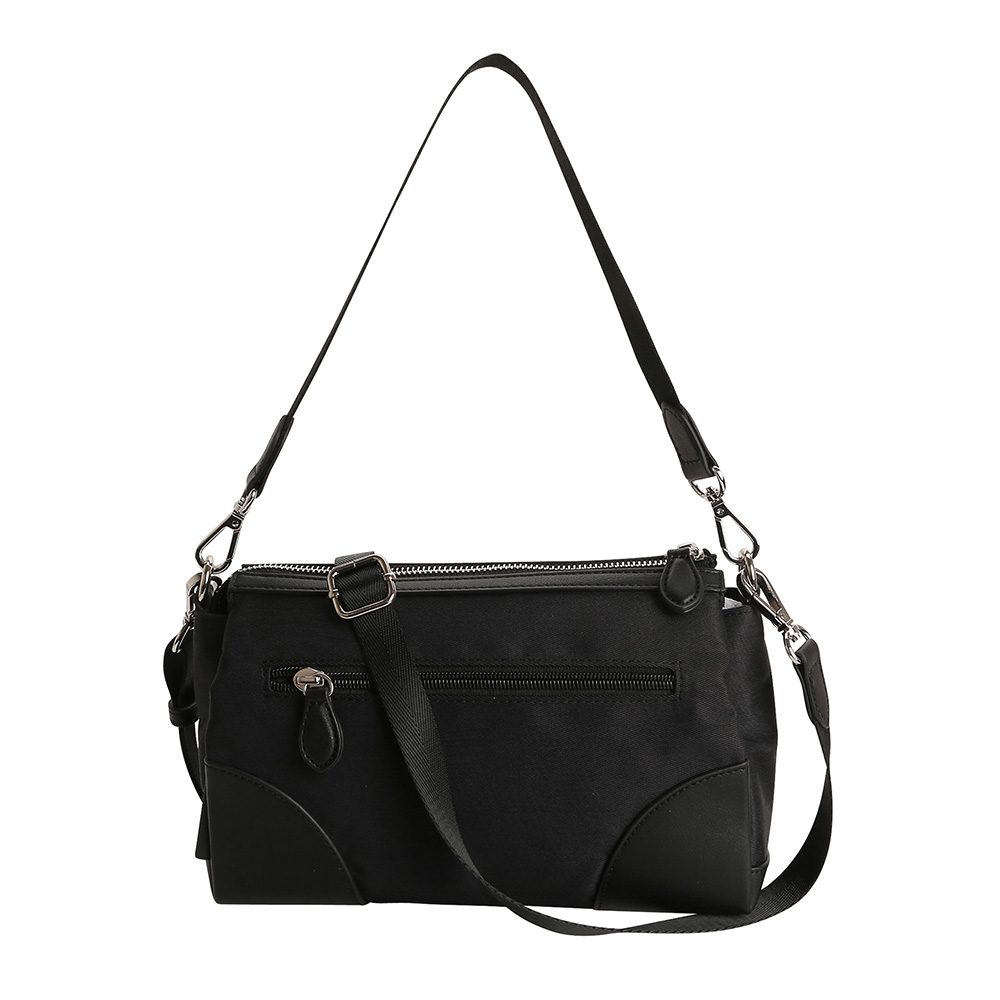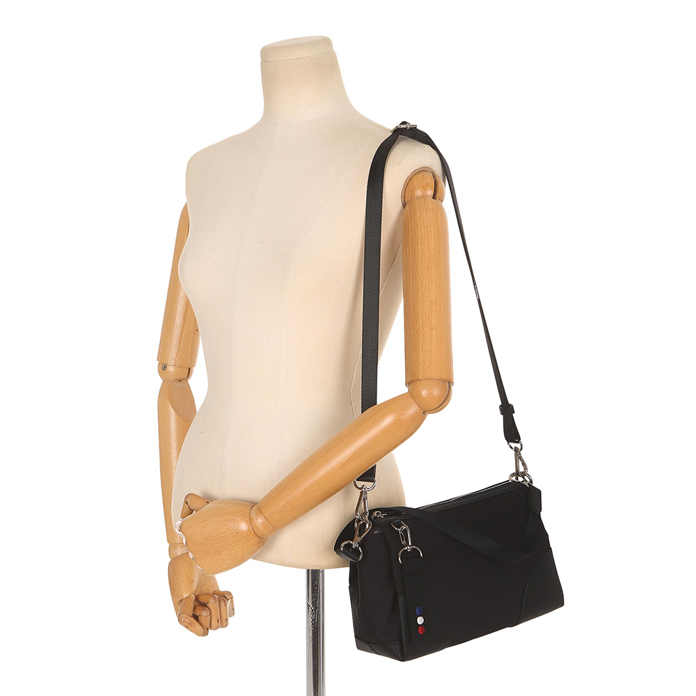 나일론+소가죽 소재로 가벼운 무게감을 자랑합니다. 분리된 수납공간과 아담한 사이즈로 착용하기 편리합니다.