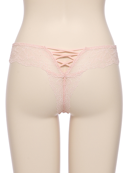 レースアップが際立つTバックタイプは、サイドを幅広に取ってあるので、安定した履き心地。