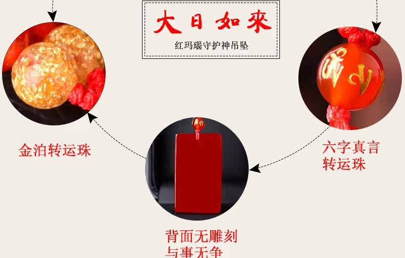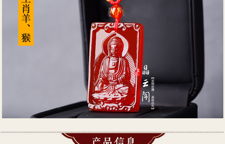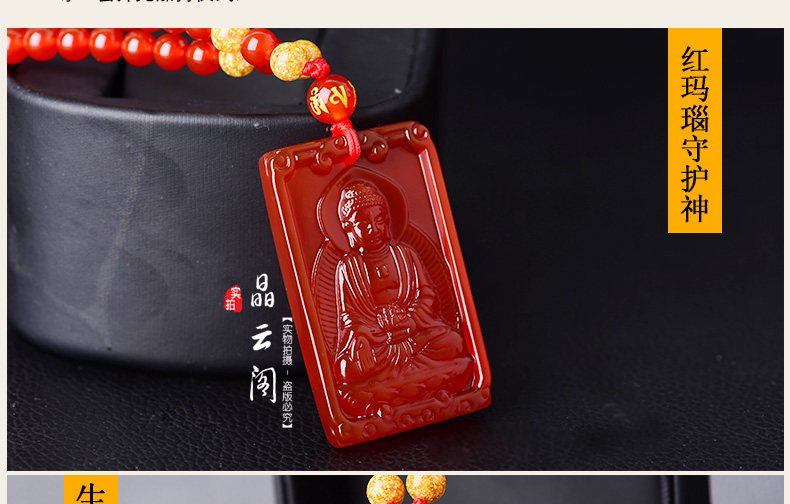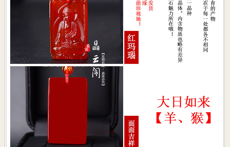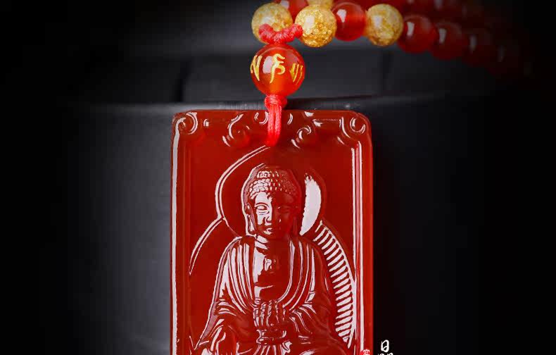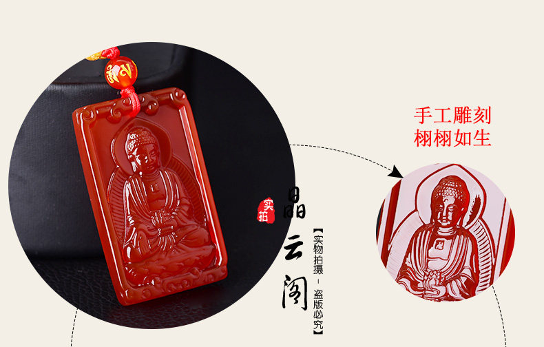开光天然红玛瑙大日如来吊坠 生肖属羊猴本命佛护身符男女项链