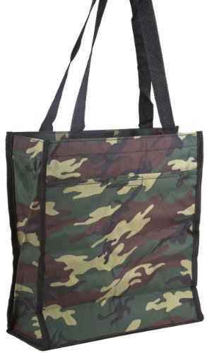-. Brand : World Traveler -. Department : womens -. Feature : Exterior Netting Water Bottle End Pocket / Silver Pewter Hardware / Main Zipper Closure / Two Exterior Pockets, One Zippered, One Velcro Closure / Attachable Coin Purse -. ProductGroup : Apparel -. ProductTypeName : LAGE -. Title : World Traveler Camo P.R.Int Collection Travel Tote Bag 12-inch