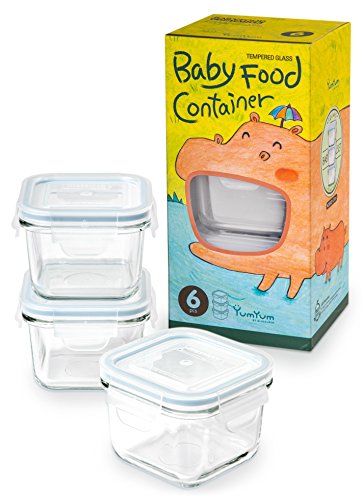 Glasslock 6pcs Set Yum Yum Eco Friendly Airtight Spill Proof Baby Meal Food Storage Container Square 210ml