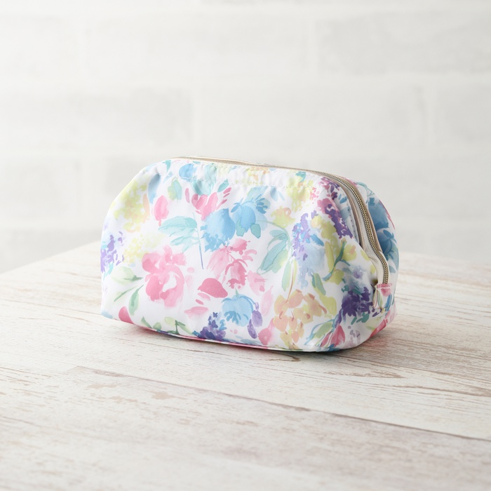 품위 있고 상쾌한 수채 터치의 꽃무늬 와이어 파우치입니다.