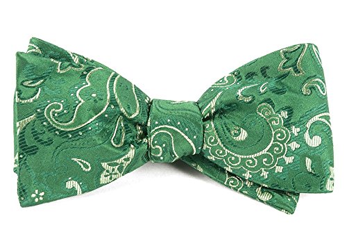 -. Title : The Tie Bar 100% Woven Silk Custom Paisley Kelly Green Self-Tie Bow Tie