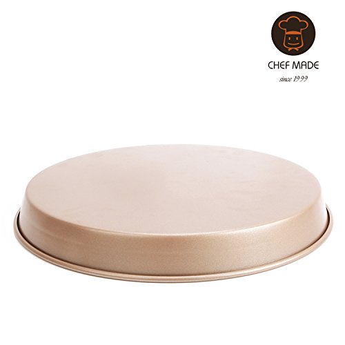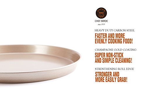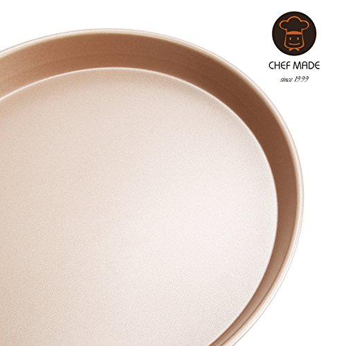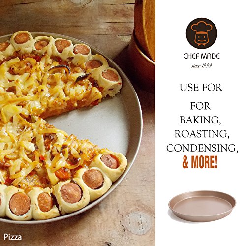 CHEFMADE Non-stick Bakeware 10 Inch Heavy Duty Pizza Pan, FDA Approved, Oven Roasting Baking Round Cake Pan (Champagne Gold)