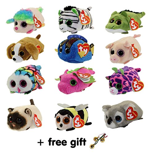 -. Feature : New arrival fall 2017 teeny tys! Suitable for ages 3+. / 12 teeny tys include: kaleb, wallie, ferris, zilla, kimi, madie, suzie, curly, darby, hootie, zinger, and floral. / Ty beanie boos are in tiny, stackable form! / Teeny tys are approx. 4" long beanies, designed to be stacked on top of each other! Collect teeny tys and stack them high! / Free gift (3 bell charms) included. Color may varies, random pick.