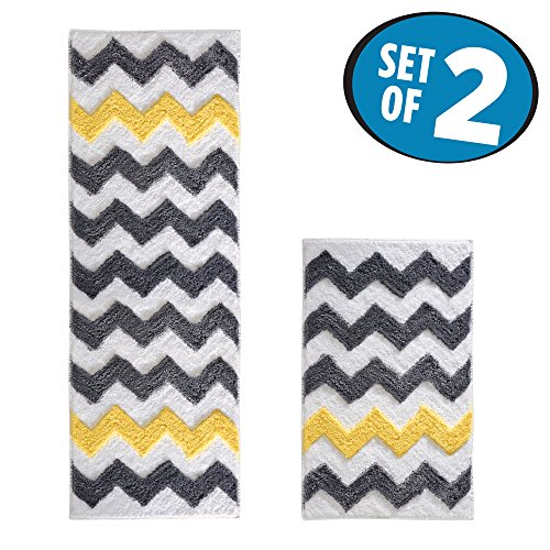 mDesign Soft Microfiber Non-Slip Bathroom Mat/Rug Set for Vanity, Bathtub/Shower, Dorm Room - Set of 2, Gray/Yellow