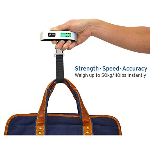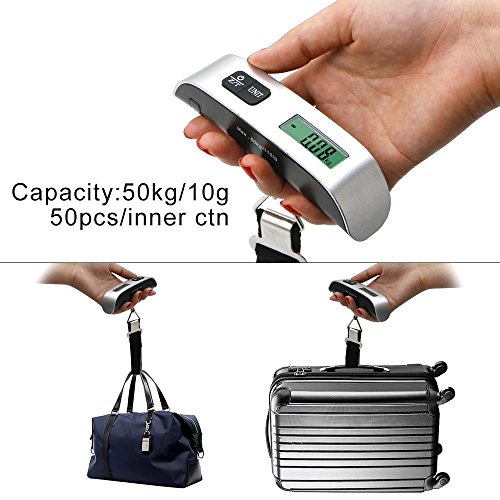 Product Description The Luggage Scale is small and handy with room temperature display when press on the unit button. It is easy to store, carry and convenient for traveler. With the rubber paint handle it gives a comfortable grip when using the scale to weigh your luggage or package anytime and anywhere during travelling or when required. Specification * Capacity: 50KG/110LB, Division: 10G/0.02LB, Unit:KG/LB. * Material: plastic and steel. * With 0.44" (11.3mm) LCD digits. * Zero and tare function; Low battery/overload indication.