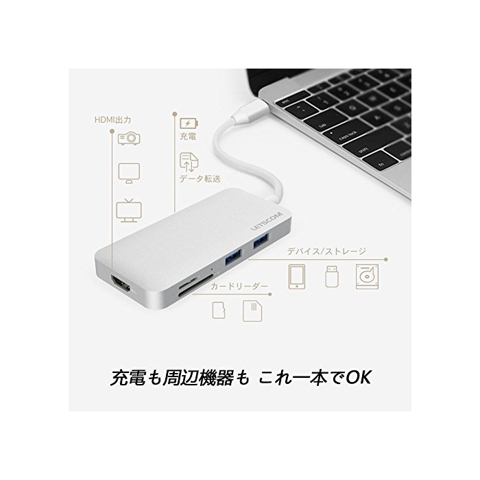 원본상품명: Letscom USB C ハブ Type-c Hub 高速USB 3.0ポト / USB 2.0ポト / HDMI換アダプタ / USB-C 充電ポト / SD / TFカドリダ ア