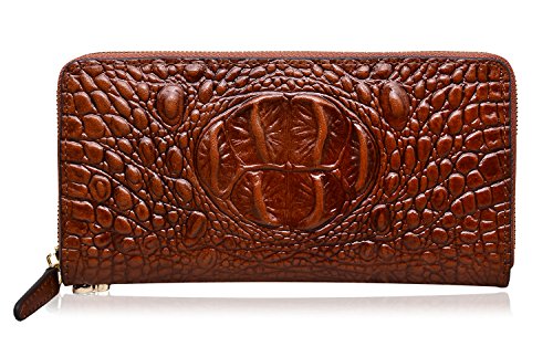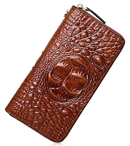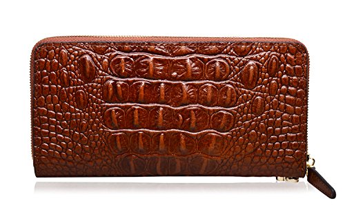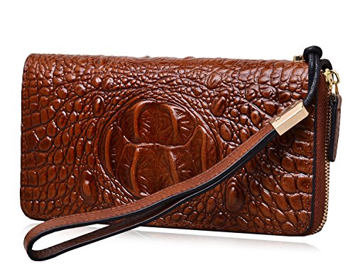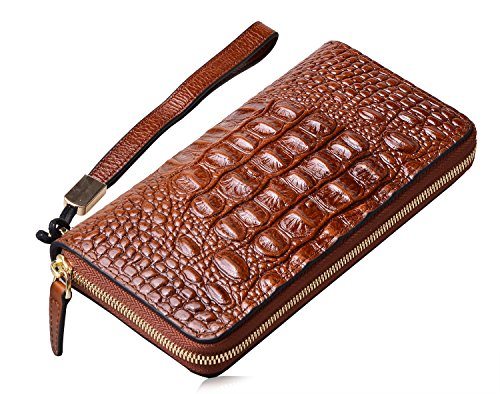 PIJUSHI Women's Wristlet Wallet Crocodile Leather Wallet Clutch Purse