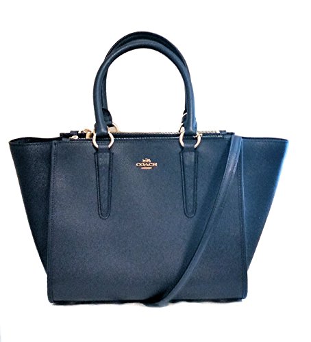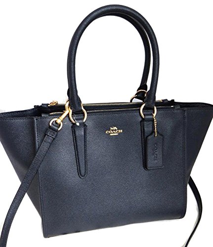 Coach F14928 Carryall Crossgrain Leather Satchel Crossbody Bag Midnight