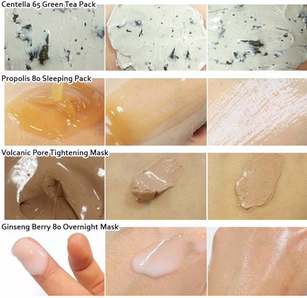 In addition to propolis extract and evening primrose oil, this sleeping pack is fortified with aloe vera water (soothing),