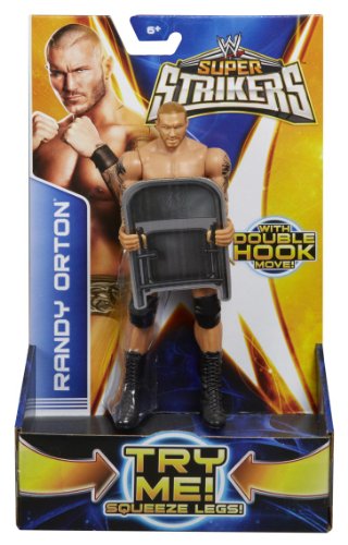 -. Binding : Toy -. Brand : Mattel -. EAN : 0746775360054 -. Feature : Super Strikers recreate real Superstar signature moves / Squeeze their legs to launch attacks including punches and slams / Created in 6-inch, realistic Superstar Scale / Each figure has authentic attire and styling / Includes 1 Super Strikers figure -. IsAdultProduct : 0 -. Label : Mattel -. LegalDisclaimer : SOLD AS IS NO RETURN UNLESS ITEM SHIP BACK IN SAME CONDITION AND SHAPE IT WAS SHIP TO THE BUYER IN. -. Manufacturer : Mattel -. Model : BJM88 -. MPN : BJM88 -. PackageQuantity : 1 -. PartNumber : BJM88 -. ProductGroup : Toy -. ProductTypeName : TOYS_AND_GAMES -. Publisher : Mattel -. Studio : Mattel -. Title : WWE Super Strikers Randy Orton 6" Action Figure -. UPC : 746775360054 -. Warranty : No Warranty