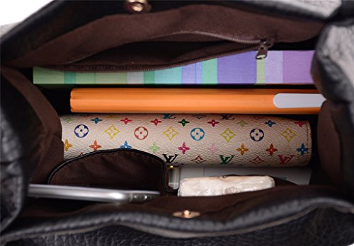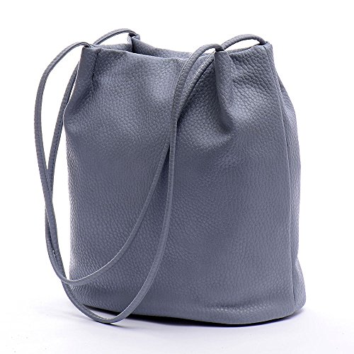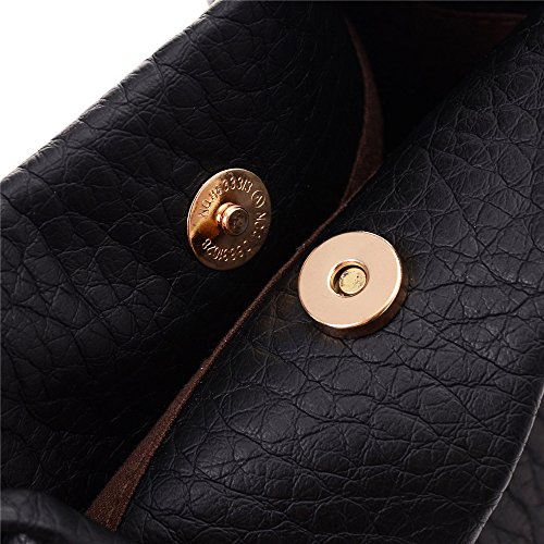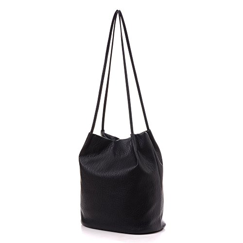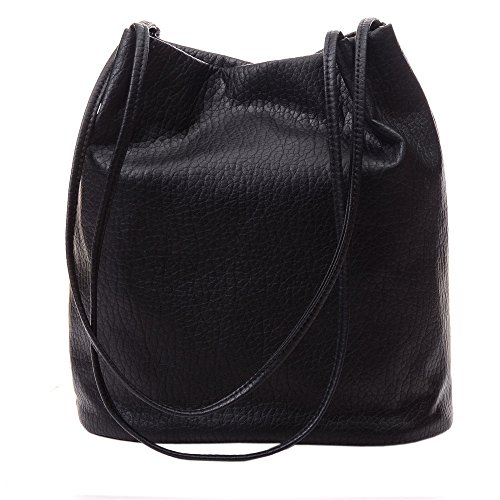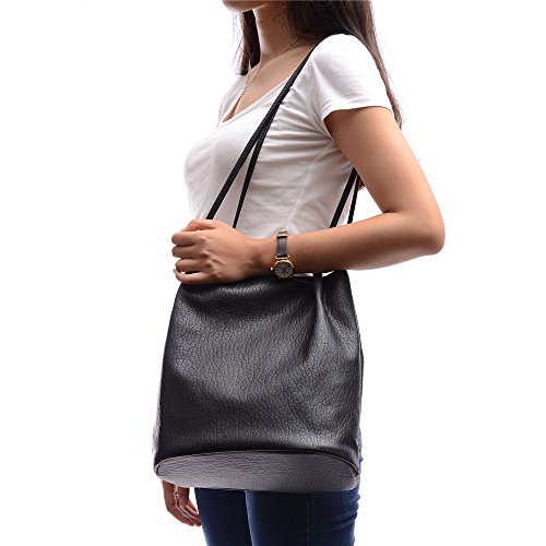 Youna Ladies Pu Leather Bucket Tote Top-handle Handbag Shoulder Purse Black