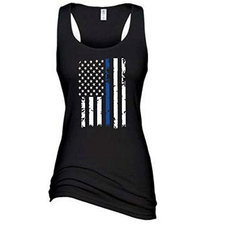 Binding : Apparel Product Description Women's Thin Blue Line Distressed U.S. Flag Racerback Tank Top Our women's racerback tank top is a great way to show your support for the men and women who defend the Thin Blue Line while also having a comfortable and casual top for warm weather or days at the beach. The tank top is incredibly lightweight, weighing in at just 5.8 ounces. The top is made of 100 percent combed, ring-spun cotton for a durable but comfortable feel, and is cut at a longer length to cover your torso and down your hips. The distressed U.S. flag featuring the Thin Blue Line colors has been professionally screen printed on an Enza tank top for quality and durability. Show your pride and support for the Thin Blue Line with this great tank top! Features: - 5.8 oz.