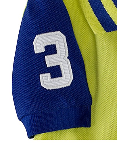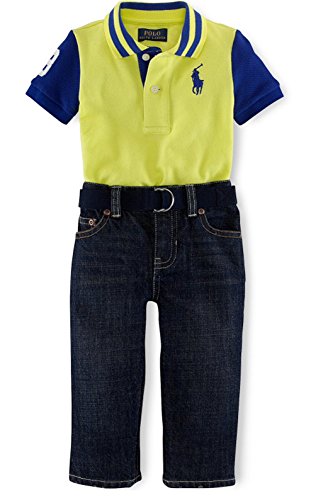 -. Binding : Apparel -. Brand : -. Color : Neon Yellow -. Department : baby-boys -. Feature : Shirt features applied two-button placket, striped ribbed polo collar / Contrasting short sleeves with ribbed cuffs, applied twill "3" at the right arm / 's signature embroidered Big Pony at the left chest / Pants features zip fly with 's signature snap shank closure, belt loops, five-pockets with 's signature metal rivets / Applied "Polo" logo label accents the back right waist. The belt features double-D-ring buckles -. Label : -. Manufacturer : -. PackageQuantity : 1 -. ProductGroup : Apparel -. ProductTypeName : PANTS -. Publisher : -. Studio : -. Title : Boys' 2-Piece Polo & Belted Pants Set
