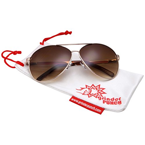 grinderPUNCH Extra Large Wide fit aviator sunglasses. Great for both men and women. 100% UV400 Protection from harmful UVA and UVB rays. Extra Large Aviator Sunglasses, Lens Width: 62mm, Lens Height: 55mm, Overall Frame Width: 148mm. Adjustable Nose Pads, for a comforatble fit. Spring hinge arms - hyperextends. Each pair comes with a grinderPUNCH® microfiber cleaning pouch.Feature