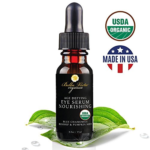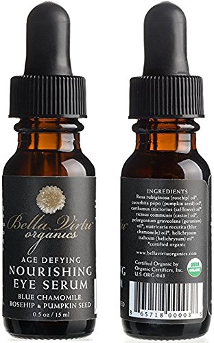 A powerful, anti-aging 100% Certified Organic eye renewal serum and eye lifting serum with no harsh chemicals or animal testing. Works great as a mens eye serum, dark circles cream, fine line trimmer and eyelid lift. Many products claim to be natural and organic but read their ingredients list. Bella VirtuTM Organics creates the highest quality skin care on the market!