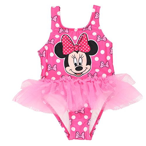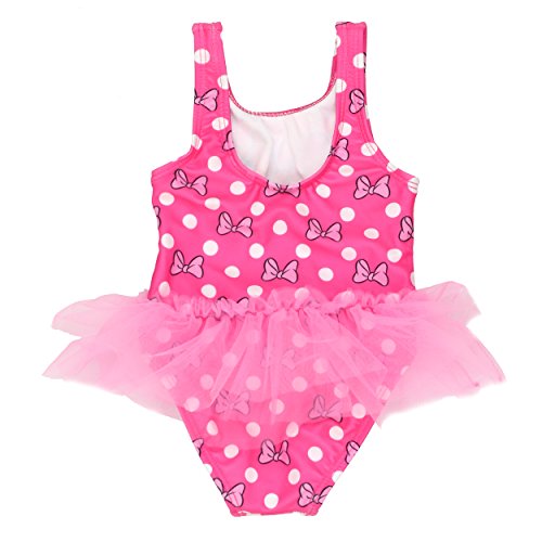 Join Minnie for a swim wearing these adorable Disney Minnie Mouse swimsuits! Perfect for the beach or kickin' around the pool, these Minnie Mouse baby and toddler bathing suits are a perfect choice! These one-piece swimsuits feature excellent UPF 50+ UV Protection to protect your little one from harmful UV rays. These Minnie Mouse swimsuits are fully lined, feature sublimated graphics and tulle for added detail and style. It's the perfect swimwear choice for any fan fan of the hit Disney Junior show, Mickey Mouse Clubhouse!Feature