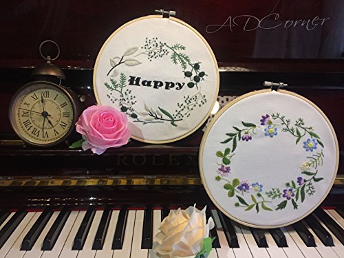 ADCorner DIY Embroidery Starter Kit Pre Printed Hand Needlework Pattern Fabric including 8'' Bamboo Embroidery Hoop Color Threads Floral Wedding Decorations Mother's Day Gift