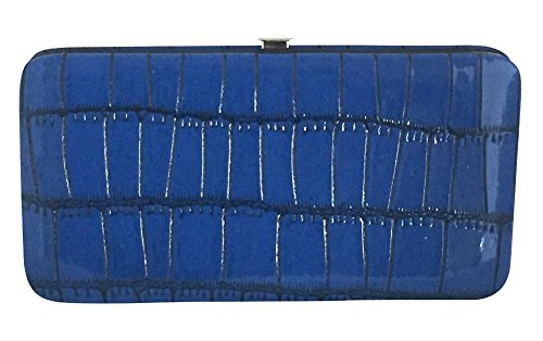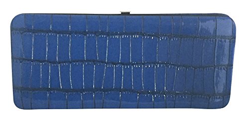 Chicastic Faux Snakeskin Leather Flat Hard Case Clutch Wallet - Blue Small