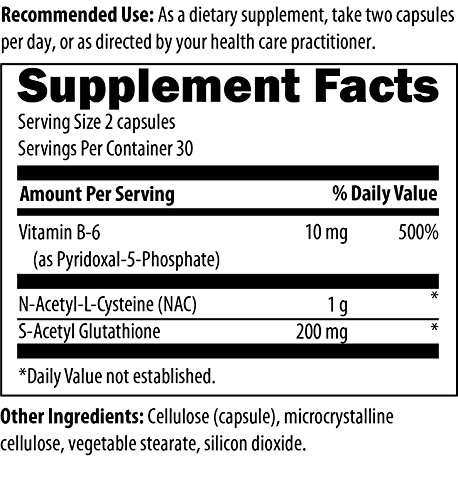 IDEAL FOR INTENSE THERAPY: S-Acetyl-Glutathione is ideal for more intense therapy when higher doses are recommended. This product also includes N-acetyl-cysteine (NAC) and vitamin B6, both of which are necessary for the production of glutathione.