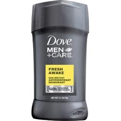 -. Binding : Health and Beauty -. Brand : Dove -. Label : Dove -. Manufacturer : Dove -. ProductGroup : Health and Beauty -. ProductTypeName : HEALTH_PERSONAL_CARE -. Publisher : Dove -. Studio : Dove -. Title : Dove Men+Care Antiperspirant & Deodorant, Fresh Awake 2.7 Ounces Dove Men+Care Fresh Awake Antiperspirant provides long-lasting freshness with an energizing scent. Specifically designed to give men protection without compromise, its unique formula combines effective ingredients for 48-hour protection against odor and wetness with non-irritant ¼ moisturizer technology.