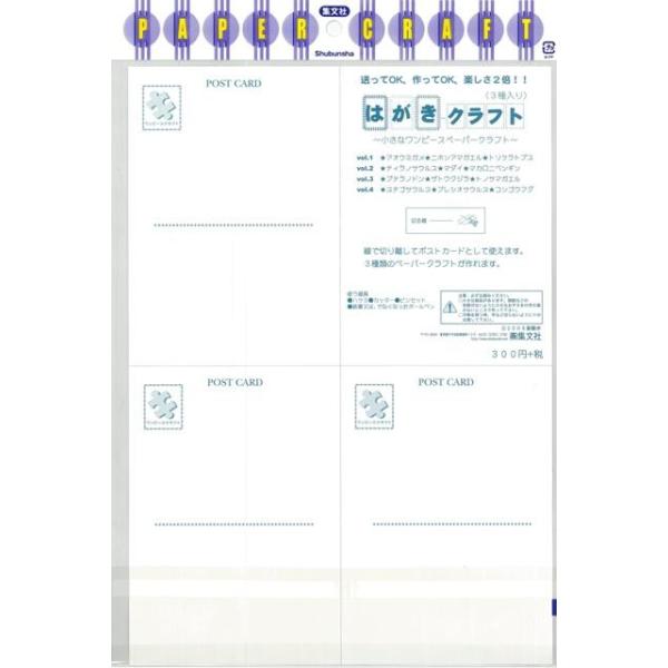 【商品基本情報】 商品名称:はがきクラフト1 アオウミガメ/ニホンアマガエル/トリケラトプス 著者/出版社:小さなワンピースペーパークラフト集文社/小さなワンピースペーパークラフト集文社 初版発行日: サイズ:A4判 ページ数:1 ISBN/JAN:4528189553132/4528189553132