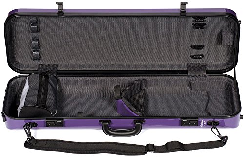 -. Feature : For 4/4 Violin / Beautiful Purple Finish - 4-Layer Shell - ABS and Polyurethane Exterior Construction - Weather Resistant Seal / Polystyrene and Polyurethane Interior Construction - Plush Polyester Interior - Instrument Suspension / Small Accessory Pouch - 4 Bow Holders - Velcro Neck Restraint - Tail Block Sponge - 2 Neoprene Shoulder Straps - D-Rings for Backpack Carrying Option / Extremely Light Weight: 4lbs (1.8 kg)