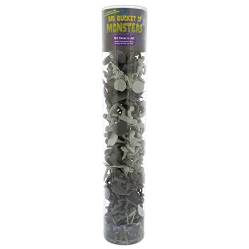 -. Feature : Big Bucket of 100 Horror Monsters / Fully combatible with our zombie line / Grey and Light Grey figures for awesome undead battles / Perfect For Halloween Trick or Treat, Teal Pumpkin, Party Decor, or awesome pretend play / Includes 100 pieces including multiples of Frankenstein, Godzilla, Mummy, Cyclops, Werewolf, Demon, Lagoon, Dracula, Zombie, Giant Spider, Giant Moth, and two brand new different gravestones