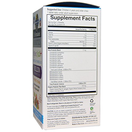 -. Binding : Health and Beauty -. Brand : Garden of Life -. Label : Garden of Life -. Manufacturer : Garden of Life -. ProductGroup : Health and Beauty -. ProductTypeName : HEALTH_PERSONAL_CARE -. Publisher : Garden of Life -. Studio : Garden of Life -. Title : Garden of Life Dr. Formulated Probiotics Organic Kids Plus Chewable Tablet