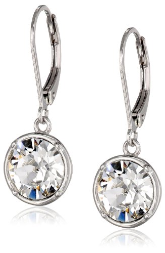 -. Title : Sterling Silver Crystal Round Lever Back Drop Earrings