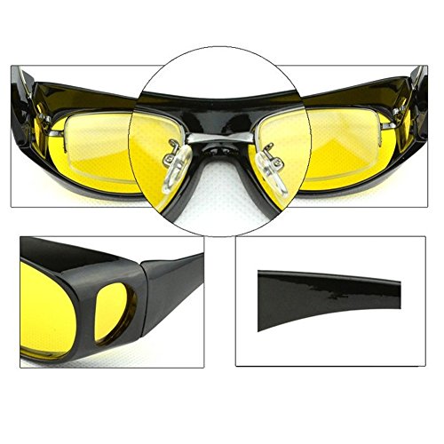Product Description HD Night Vision Wraparounds are the perfect glasses for driving at night. They cut the glare of oncoming headlights while enhancing your ability to see everything else. Featuring HD Vision technology, they give you unsurpassed clarity and enhanced color like you've never experienced before. The lightweight glasses fit right over your prescription glasses and combine modern European styling with durable construction. You could spend more money, but you can't get better night vision glasses! Features: Fits over prescription glasses Lightweight and durable Modern European styling 0