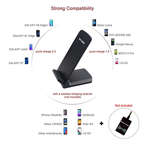 APPLICABLE PHONES: Fast charge modes are available for the Samsung Galaxy Note 5, Galaxy S6 Edge,S6 Edge plus,S6, Galaxy S7, S7 Edge. Other devices marked QI will charge at regular speed. Other devices without wireless charge function must require an additional wireless charging receiver (Not Included).