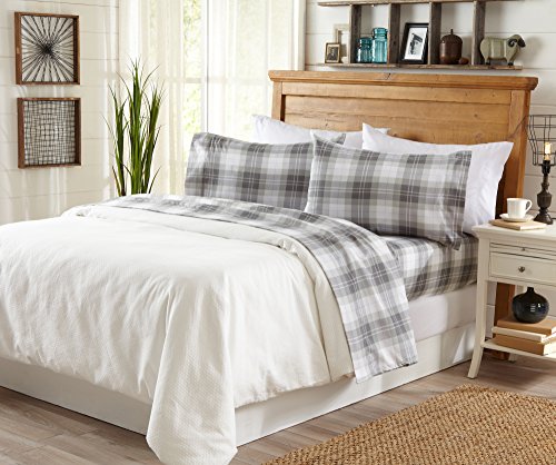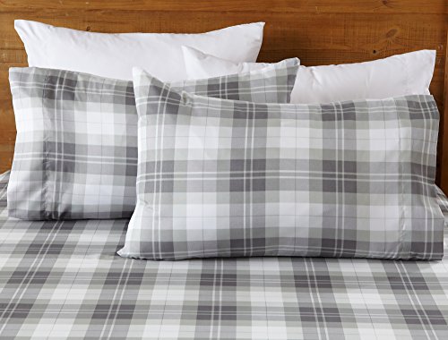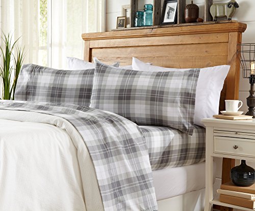 Egyptian Quality Double Brushed Microfiber Sheet Set. Hypoallergenic, Wrinkle & Fade Resistant Hotel Luxury Bed Sheets. Hanley Collection By Great Bay Home Brand. (Queen, Frosty Grey Plaid)