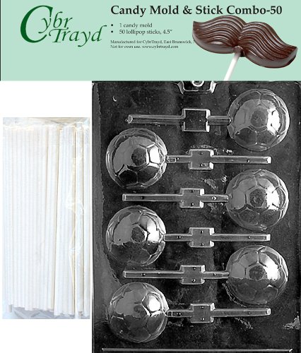 Cybrtrayd 45St50-S019 Soccer Ball Lolly Chocolate Candy Mold with 50 Cybrtrayd 4.5" Lollipop Sticks