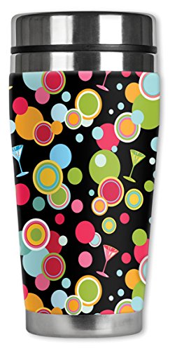 Mugzie 939-MAX "Martini Polka Dots" Stainless Steel Travel Mug with Insulated Wetsuit Cover, 20 oz, Black