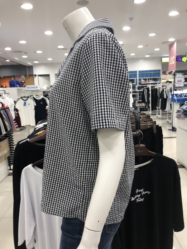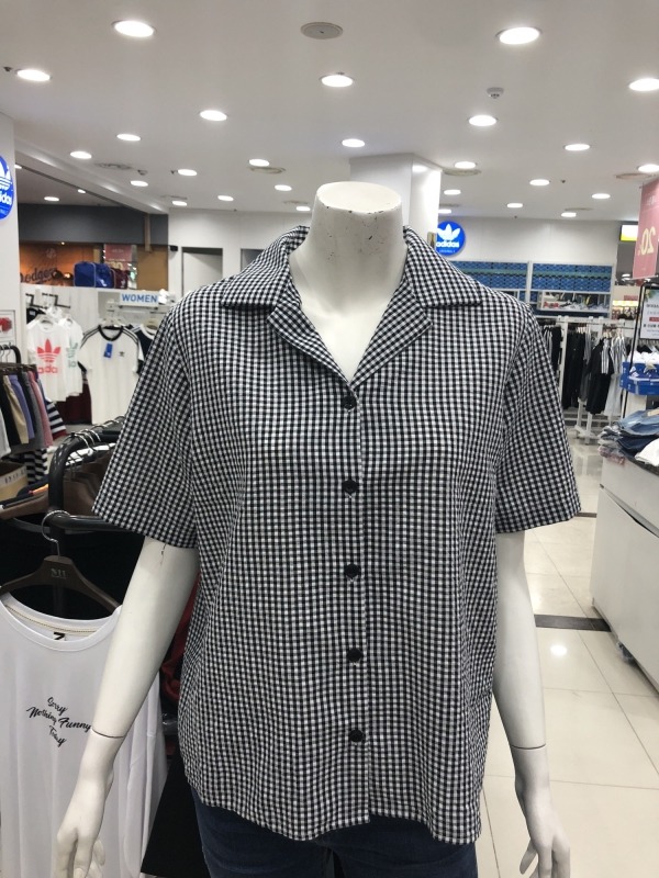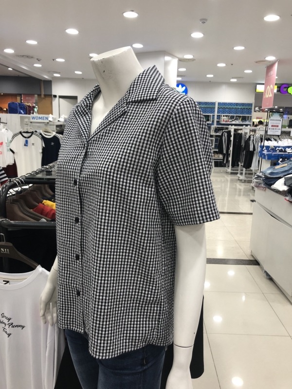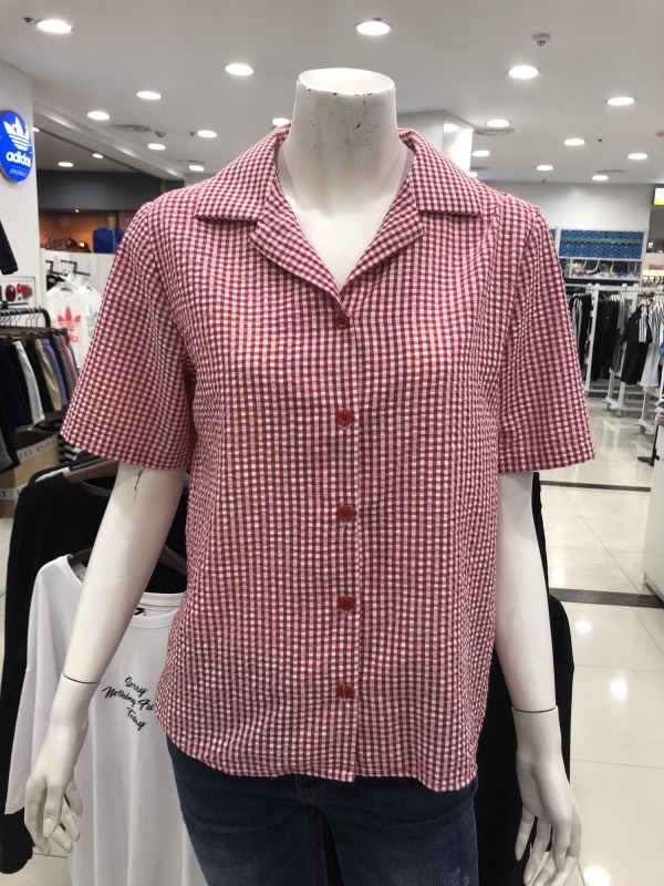 여성) 시어서커 체크 반팔 셔츠