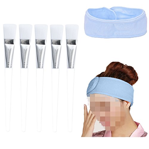 SelfTek 5 Pack Facial Mask Brush with Headband for Applying Face Mud Mask, Eye Mask or DIY Need