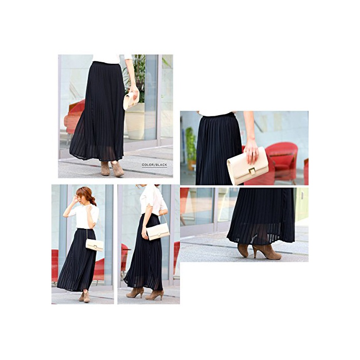원본상품명: (ファッションレタ?)FashionLetter プリ?ツスカ?ト ロング マキシ丈 シフォン ポリエステル プリ?ツ フレア 無地 ウエストゴム レディ?ス d133